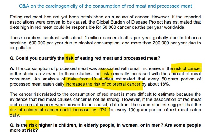 Any expert in human biology knows meat in moderation is fine, but as the Regulatory Toxicology and Pharmacology authors note, if you use IARC classification of meat (Group 1) as your guide, then logically mustard gas (also Group 1) in moderation must also be fine. But they are only the same because to IARC 1 is equal to 10,000,000. Of course they are not the same in risk, mustard gas will kill you and bologna won't.(5)