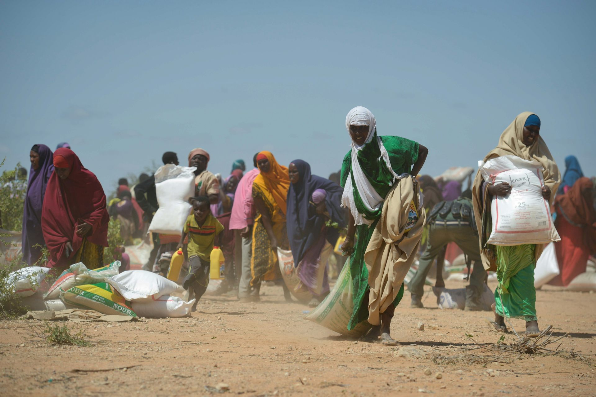 Women receive food aid in Somalia. Terrorism creates food disruptions, undermining production systems and supply routes. Tobin Jones/Wikimedia Commons