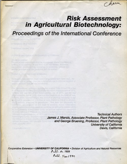 A similar conversation example occurred in 1988. An International Conference "Risk Assessment in Agricultural Biotechnology” was held on the campus of the University of California, Davis.