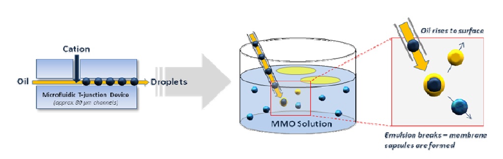 Figure 3: Mass-production of membrane sacks ranging from 100-400 μm using a microfluidic
