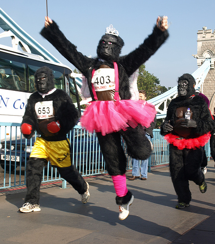 Gorrilla Madness: These fellow costume wearers have dressed up the usual boring gorrilla suit with extra special touches like a tutu and tiara or boxing gloves. Make your animal costume your own with a personal twist and it will be big hit. Photo credit: flikr user internets dairy.