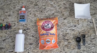 Polyvinyl alcohol sounds scary if you don’t like chemical names but it’s the active ingredient in a peel-off face mask and seeing people in those are scarier than a lot of things in science. You still use food coloring, which is scary to some, but instead of borax you can use baking soda and contact lens solution to start the chemical process.