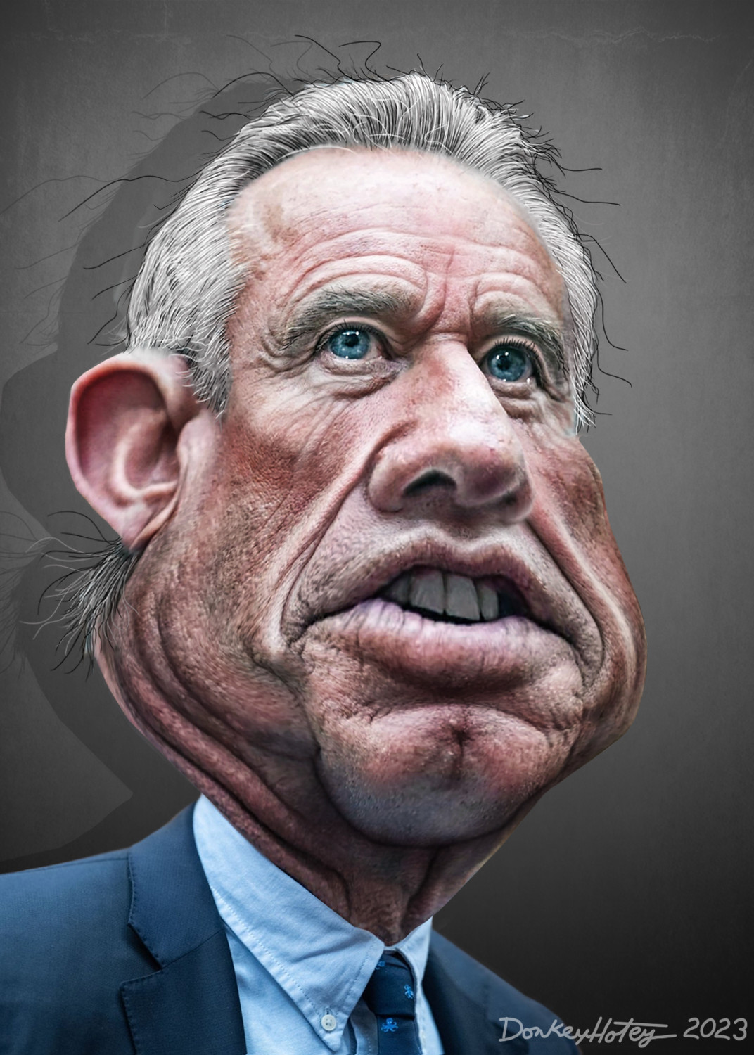 RFK Jr Caricature. It's not easy to make a man look more absurd than he does in real life. CC by DonkeyHotey.