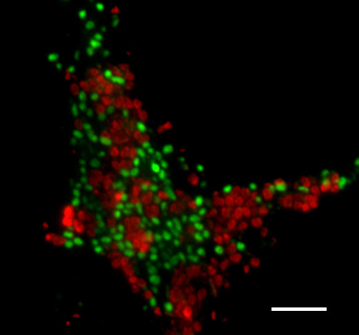 The enrichment of the microorganisms responsible for marine AOM, archaea in red and bacteria in green from the Isis Mud Volcano in the Mediterranean Sea has taken 8 years of continuous incubation. Without these cultures it would not have been possible to trace down the complex sulfur cycling involved in AOM. Credit: Jana Milucka, MPI for Marine Microbiology