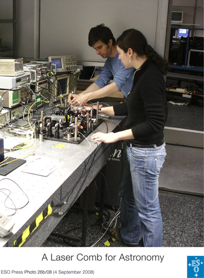 Astronomical instruments needed to answer crucial questions, such as the search for Earth-like planets or the way the Universe expands, have come a step closer with the first demonstration at the telescope of a new calibration system for precise spectrographs. The method uses a Nobel Prize-winning technology called a 'laser frequency comb', and is published in this week's issue of Science.
