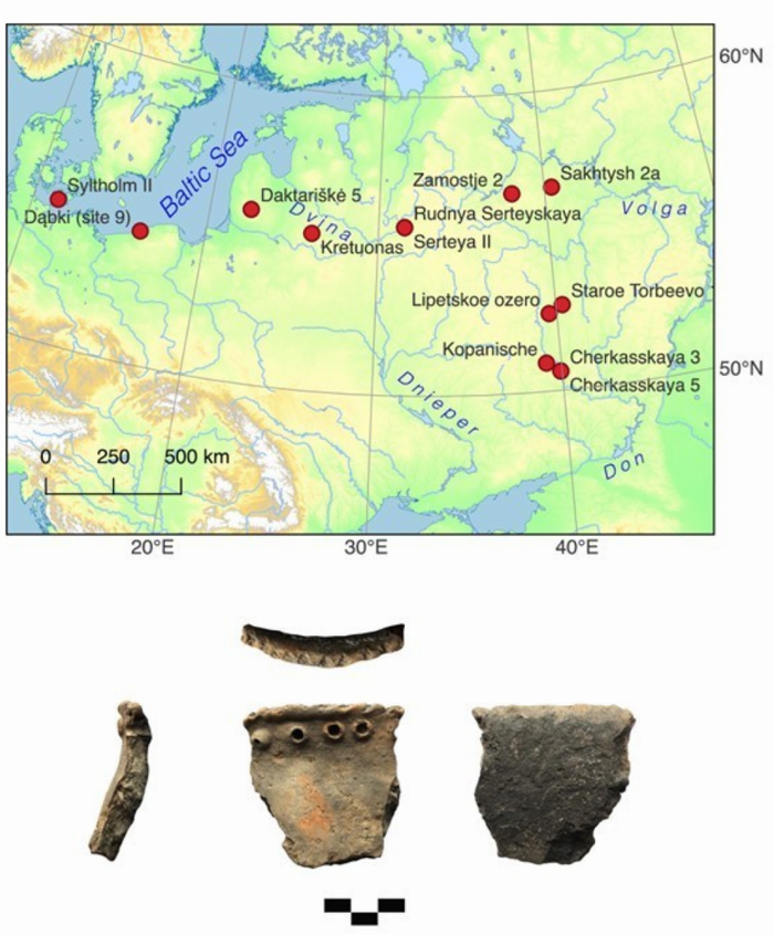 A new study analyzed remains found on 58 pieces of pottery from 13 archaeological sites of mesolithic natives, dating between the 6th and 3rd millennium BC, from the Don river Basin to the Baltics to the Upper Volga - near lakes, rivers, lagoons, and the coast. Using microscopic examination and chemical analysis the resulting work went beyond detecting fatty residues of animal remains and found ancient pre-European hunter-gatherer-fishers had meals of fish plus a wide variety of wild grasses, legumes, fruits or berries, green vegetables, and roots/tubers.