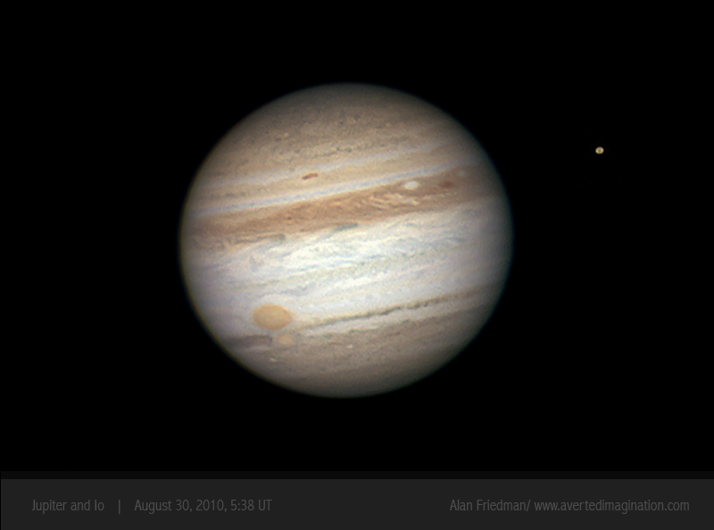 One thing that has not happened since 1963 is Jupiter being this close to Earth - but the gap won't be so long until the next - 12 years, according to NASA. It's a mathematical circumstance because Jupiter's orbit is 12 times as long as Earth's. Earth laps its giant neighbor in just under 400 days so as it approache2 perihelion in March 2011, its closest approach to the sun, we will be a mere 367 million miles or so from us. What does that mean? Cool things, like seeing the Great Red Spot, a cyclone twice as wide as Earth, bumping up against "Red Spot Jr." - two planet-sized tempests battling each other must be seen to be believed.