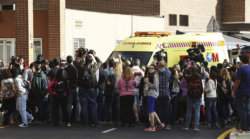 Commotion outside house of infected nurse Teresa Ramos near Madrid. Credit: EPA