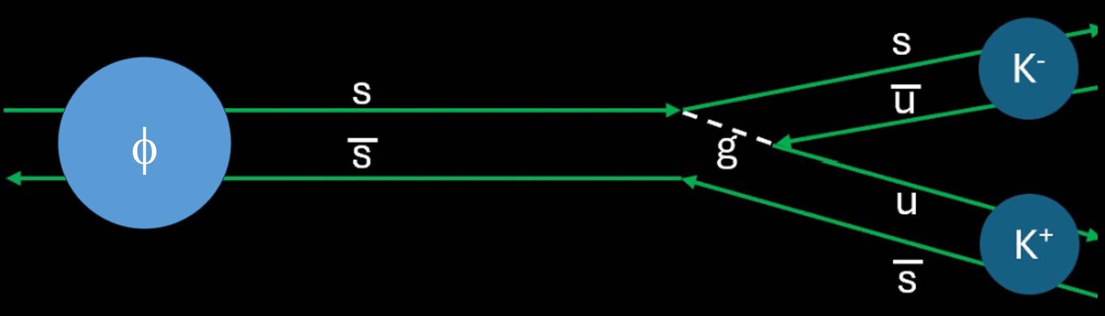 Now let me introduce the Phi meson to you. Like the proton, the neutron, the pion, and the Lambda, it is not an elementary particle but a composite one. It is composed of a strange–antistrange quark pair, and its mass is about 1019.5 MeV. This makes it possible for it to decay in a few different final states. What do the rules of the subnuclear world say about the different decays and their relative importance? Let us find out.
