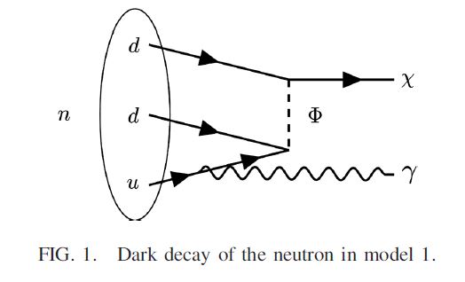 Also of interest is that at least one of the possibilities put forth as an explanation of the anomaly is fairly easy to test experimentally, as the decay shown in the picture below (which was taken from the article) should yield "monochromatic" photons, ones i.e. with the same energy, corresponding to the difference between the mass of the neutron and the produced dark matter particle. So if you have a bottle of neutrons in your garage and you can scavenge a photon detector good enough to measure MeV-energy deposits, please go and try to see what happens, then let us know. We will be interested to hear your results.