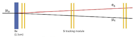 In such a system there is a target - let us say a 1-cm thick layer of beryllium or carbon - followed by several tracking layers that record the passage of the particles. The structure (target - tracker) is repeated several times, so that we get to measure the incident particle trajectory and then the outgoing, forward-traveling final state particles too.