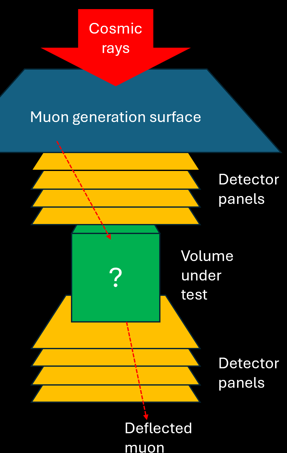 In muon scattering tomography you rely on a measurement of the deflection that cosmic-ray muon trajectories withstand when these particles traverse a unknown material, to guess the composition of the material and its density distribution. Imagine, for example, that you are a border control operator and you are searching for smuggling of Uranium inside concrete blocks carried by trucks from country A to country B. In absence of a notitia criminis on the fact that a particular shipment contains the material, you would have to rely on random checks (very ineffective) that destroy the concrete block. Or you could test for radioactivity, but this is also ineffective as the uranium could be shielded within some lead structure inside the concrete.
