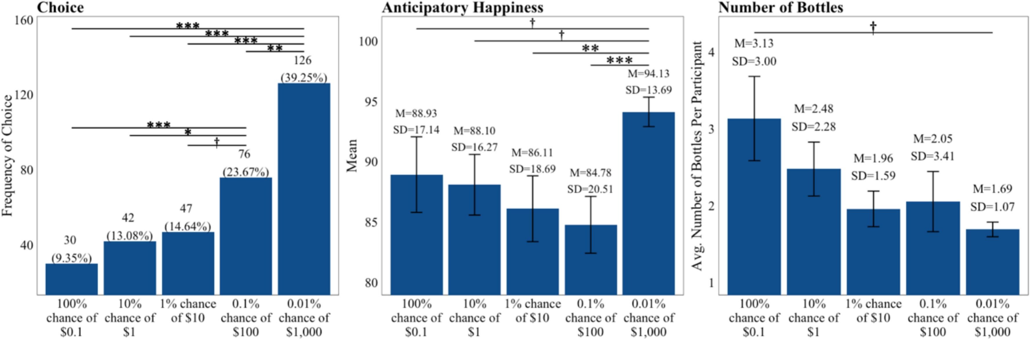 Recycling of bottles went up 47%. So did "anticipatory" happiness. People were also a lot happier about gambling than they were just getting a dime.