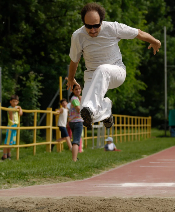 From 2006, when I couldn't resist trying the long jump at an event for my son (first from left)