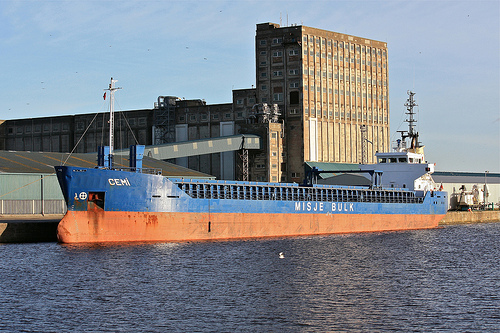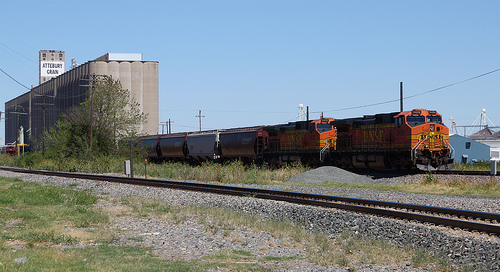 The grain is later moved in things like 110-car freight trains or giant barges or ships, which again mix various sources. Along that path, some of the grain is processed into ingredients for human food, while most of it goes to animal feed.