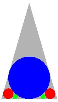 Now again, an outer triangle cannot be had (if it's base is to still touch all three circles), or in other words, the “triangle’s” area would be infinite, because it opens up instead of having a top.