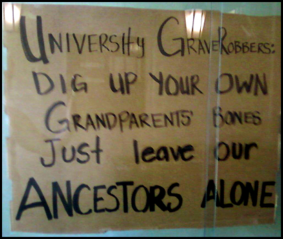 To further investigate this story, I interviewed UC Davis archaeologist and UC review panel member, Dr. Robert Bettinger. On the day of the interview, there happened to be a demonstration against his facility and protesters were demanding that artifacts and remains held at UC Davis be returned to Native Americans.