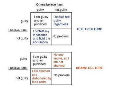 1.) In a shame culture, my feelings of guilt, (or shame,) are determined by your expectations of me.