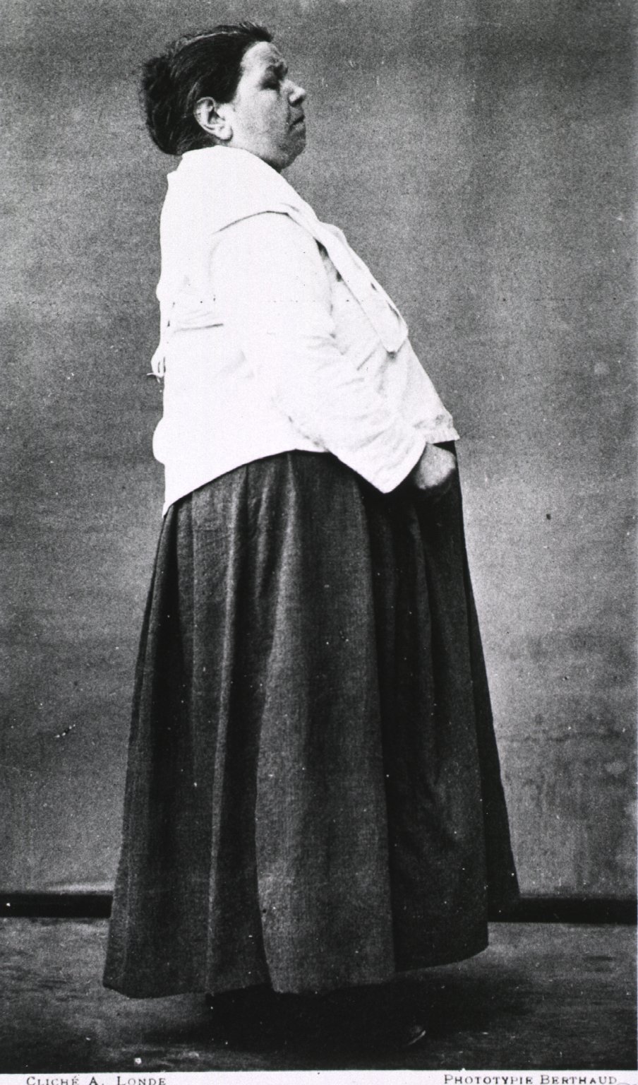 Woman in typical paralysis extension from Parkinson's disease . Image by iAlbert_Londe (1889)