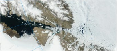 Ice stream has dispersed, the central Kane Basin, outlet for the Humboldt Glacier is open water.