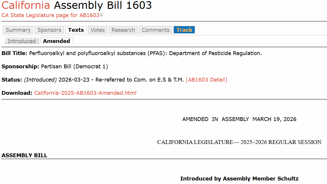 Schultz wants to ban Perfluoroalkyl and polyfluoroalkyl substances (PFAS), heavily marketed as Forever Chemicals™ by the same anti-science activists who claimed Colony Collapse Disorder due to neonicotinoid seed treatments were causing a food web collapse. Even though honeybees basically only pollinate almonds, and those are overwhelmingly rented and shipped on trucks to farms.