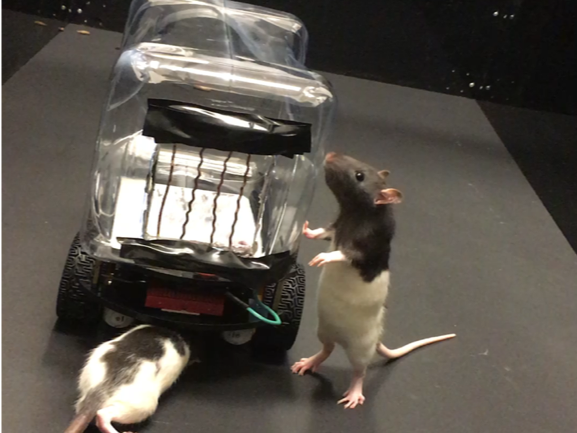 The experiment involved a tiny container on wheels and Fruit Loops. They steered with three copper bars, which is actually more advanced than an old military tank, if you are old enough to have driven those. By increasing the distance to the food, the animals gradually learned to drive better.