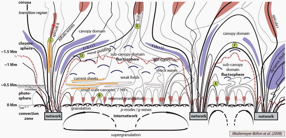 As always, this one result isn't the end-all-be-all of the sun. For example, here's an explanatory cartoon from a 2008 paper "Coupling from the photosphere to the chromosphere and the corona" (Wedemeyer et al):