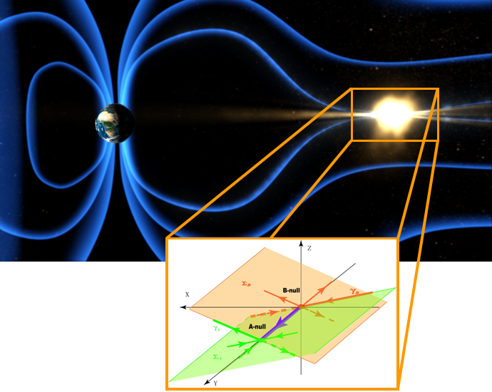 The researchers tested theoretical results published 20 years ago, which predicted that any small perturbation to such a reconnection site would produce not one, but two magnetically linked reconnection sites, a pair of magnetic nulls and magnetically linked reconnection geometry.