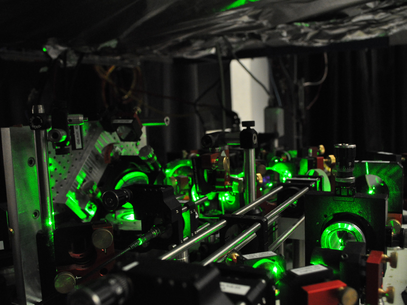 Thermoelectric Materials Emulator. Part of the optical system used to trap and manipulate atoms. The arrangement of mirrors and lenses brings the a large number of laser beams onto the atoms. Photo : Jean-Philippe Brantut / ETH Zurich