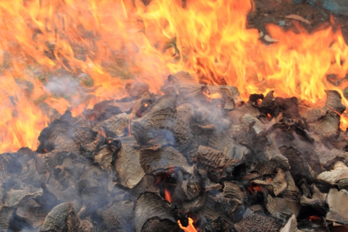 Honduran officials burn hundreds of shark fins. Credit: Javier Maradiaga, Pew Environment Group
