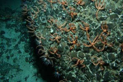 They photographed brown-black brittlestars numbering hundreds per square meter and estimate tens of millions of them populate the 100 square km flat top of the seamount.