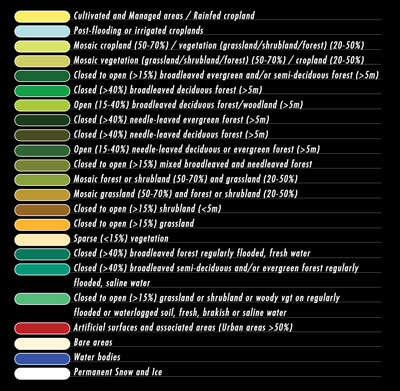 ESA’s global land cover map was generated using 19 months worth of data, collected between January 2005 and June 2006, from Envisat’s Medium Resolution Imaging Spectrometer (MERIS) instrument. It is the highest resolution land cover map that has been completely validated ever released. Credits: ESA - MEDIAS France/Postel