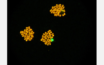 An under-microscope view shows clusters of cyanobacteria collected in the Pacific Ocean. Credit: Rachel Foster, UCSC
