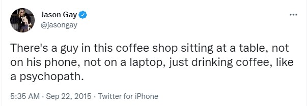There are even jokes about someone sitting in a coffee shop and seeming bizarre because they just enjoy a coffee.
