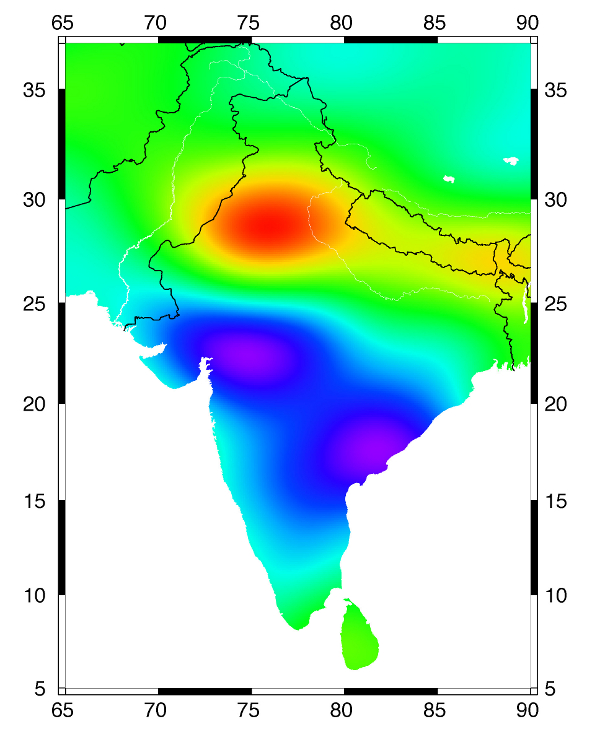 In the period 2002 - 2008 GRACE data show that Northern India is loosing a lot of its groundwater (red). Credit: NASA