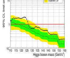 - Higgs masses below 115.5 GeV and above 131 GeV are excluded by ATLAS