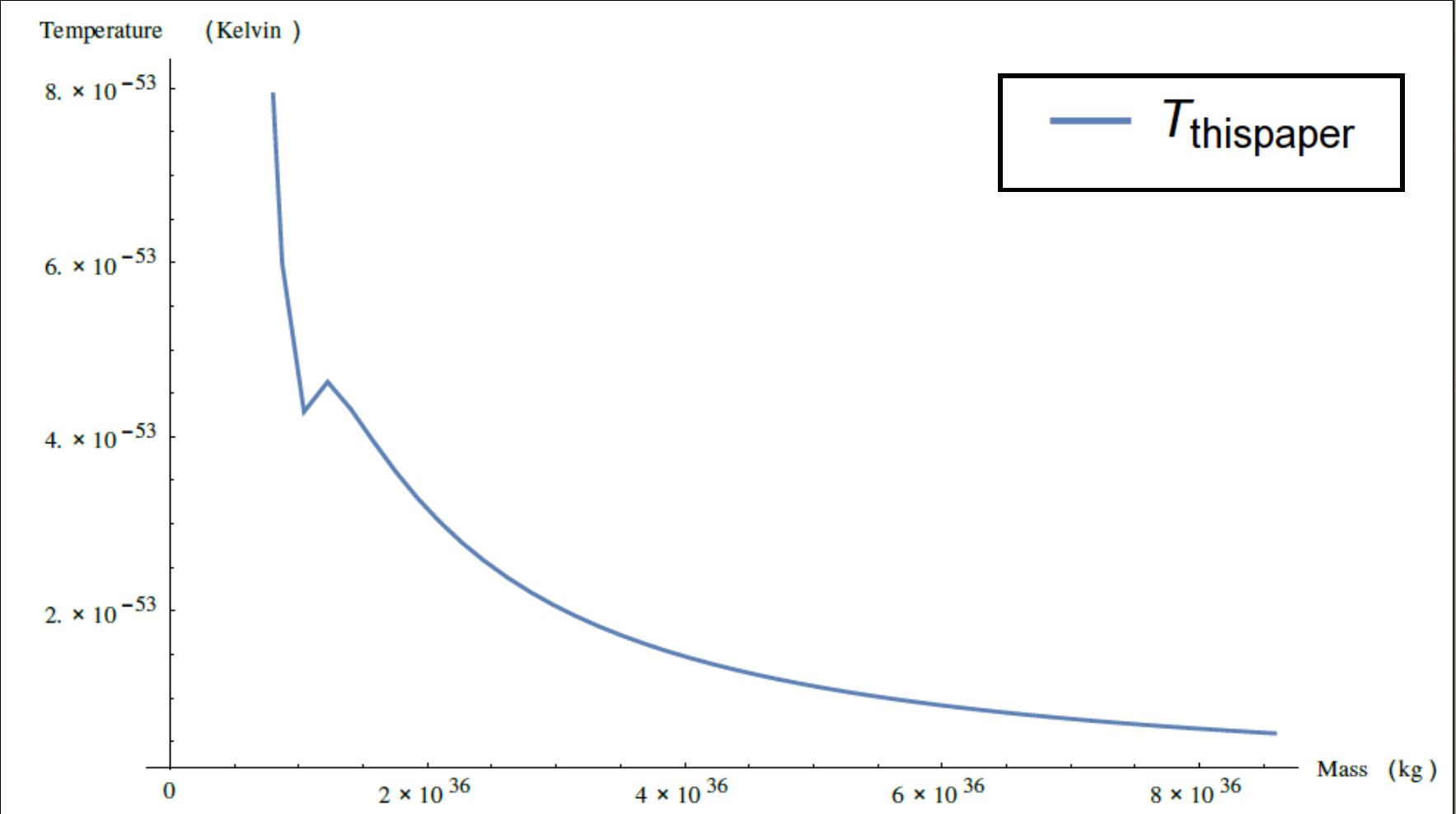 However, as the plots above show this model passes the basic computational test of black hole thermodynamics. It extends it by predicting the same effect as the semiclassical Bekenstein-Hawking formulation and predicts an effect for very large black holes that may one day be observable.