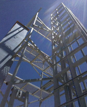 | IOS' 30-ft tall vertical rocket engine test stand at Mojave Spaceport |