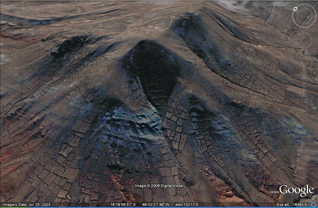 Well, first a cautionary note; one of her references is a site claiming that Bolivia was Atlantis. Invoking Plato and then massaging data to fit into a favorite hypothesis would ordinarily raise a red flag so we're all forgiven for being a little skeptical. That aside, and since I am no archeology expert I won't comment on the references but instead stick to the topic. They also used Google to capture some neat images, like this one: