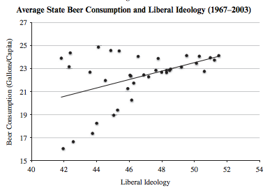 Yakovlev and Guessford analyzed almost 60 years of longitudinal data and found that the more liberal a state becomes, the more its consumption of hard alcohol and beer rises. It's the weekend so I am not even going to question that methodology. They cite Satoshi Kanazawa, the psychologist famous for determining that we evolved to find black women less attractive, so it must be valid.