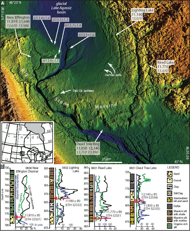 "We know from various records that there were episodes of warming and cooling associated with the ice ages, and that a dramatic warming event (the end of the Younger Dryas cold period) was a dramatic example of rapid warming," said University of Toledo Professor of Geology Timothy Fisher. "It has been suggested for a while that a diversion of drainage from Lake Agassiz caused the cooling that led to the Younger Dryas (YD) cold period. If we can ascertain that Lake Agassiz was involved in the cooling, then another diversion of drainage might, in some way, be associated with the warming at the end of the YD.