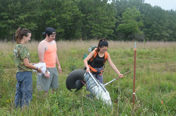 Students from Matthew Moran’s laboratory at Hendrix College sampling insects in a natural prairie in Arkansas using a suction machine. Studies like these help scientist gather long-term data on insect populations. Matthew Moran, CC BY-ND