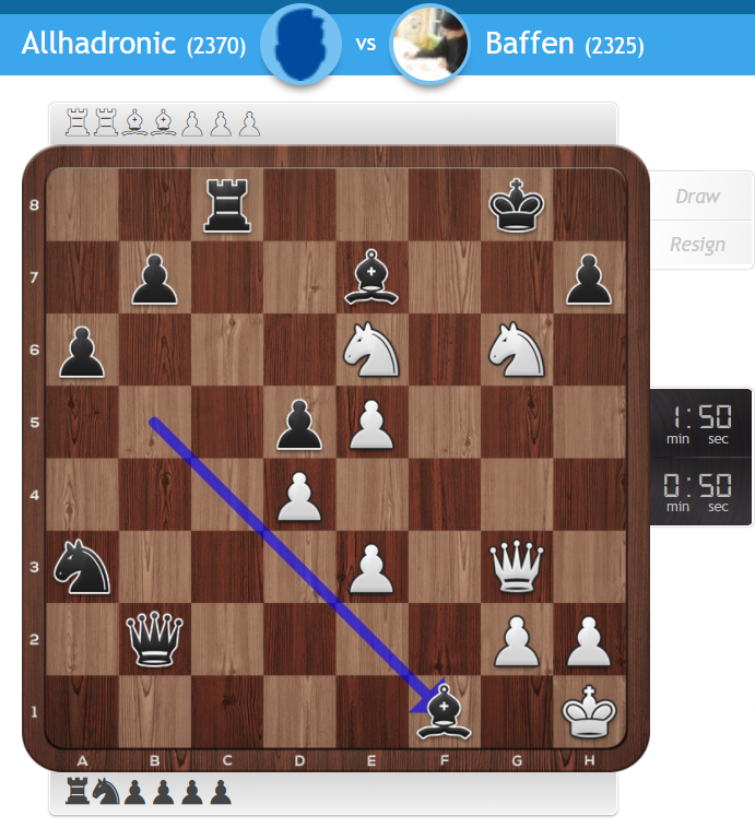 Tic-tac, the clock is ticking. As the display shows, I had fifty seconds to finish the game. Luckily I had seen the unorthodox solving move before sacrificing the material, and ended the thing in style.